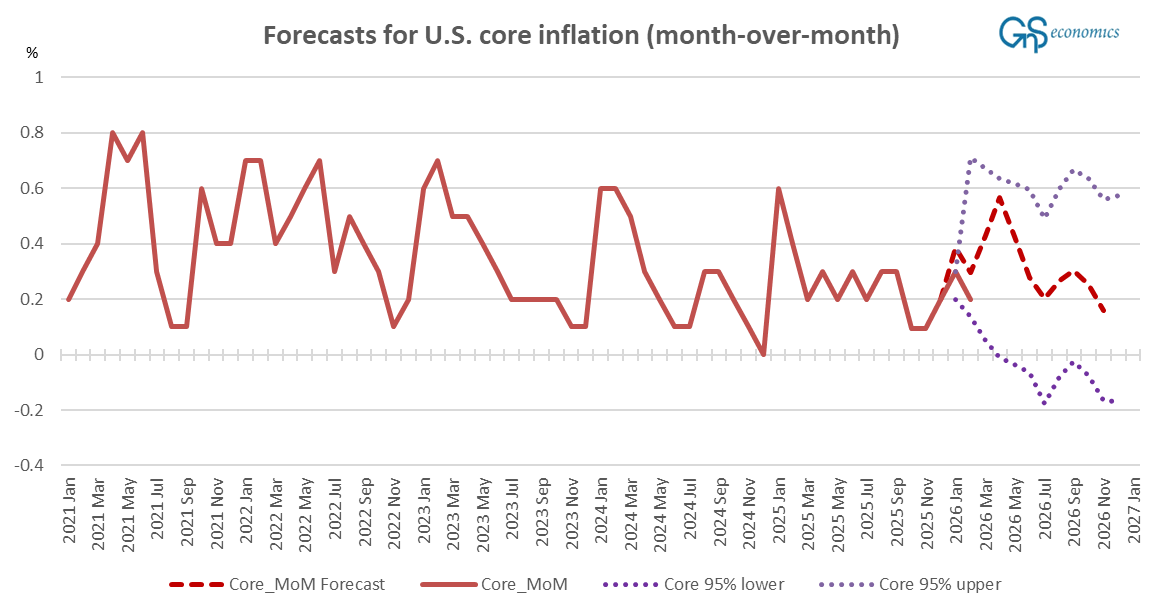 Given the accuracy of our forecasts for the CPI and super-core inflation, it’s plausible that the deviation from the core is merely a random statistical event. What this means to say is that no forecast can be assumed to be 100% accurate, but there’s a stochastic variation in the forecasts based on the assumption of the underlying probability distribution. All statistical forecasts are of the form: estimate +/- the margin of error, where the “estimate“ or “point estimate” is the term for the actual forecasted value and the margin of error is the assessment of the model on the fluctuation of the forecast based on the underlying distribution and the predetermined threshold. In economic sciences, 95% is generally used as a threshold for “statistically significant” observation (and forecast), while, for example, in physics, much tighter thresholds, like 99.999%, are oftentimes used. This difference arises from the fact that stochasticity (randomness of observations) in measured physical phenomena is generally much smaller than in economics. Just think of it as a difference between the actions of men vs. laws of physics. Thus, at this point we do not make any major changes to our forecasting model, because the miss in our core inflation forecast can be just random statistical variation.