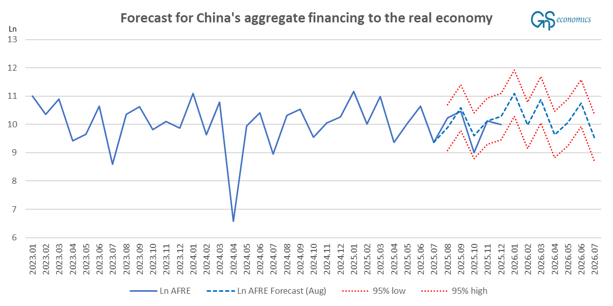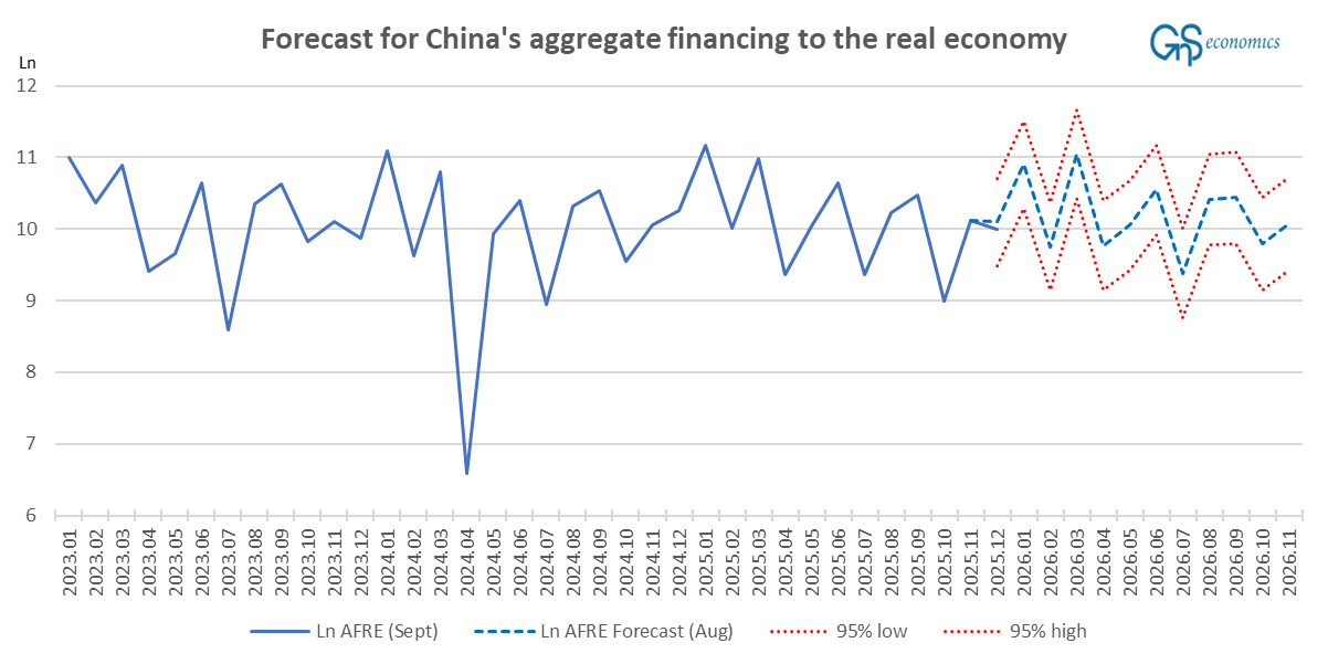 Forecasts for aggregate financing of the economy of China.